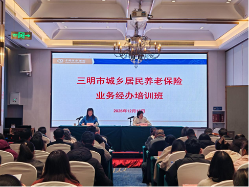12月15日-16日,三明市举办城乡居民养老保险业务经办培训班,各县(市、区)经办机构负责人、业务骨干及市城居保中心相关人员共50人参训。市人社局党组成员、副局长罗琪出席开班式并讲话。她强调,要增强学习的自觉性和主动性,主动钻研业务知识;要精准把握培训重点内容,将培训所学转化为实际工作能力;要切实担当作为,推动全市城居保工作稳步开展。