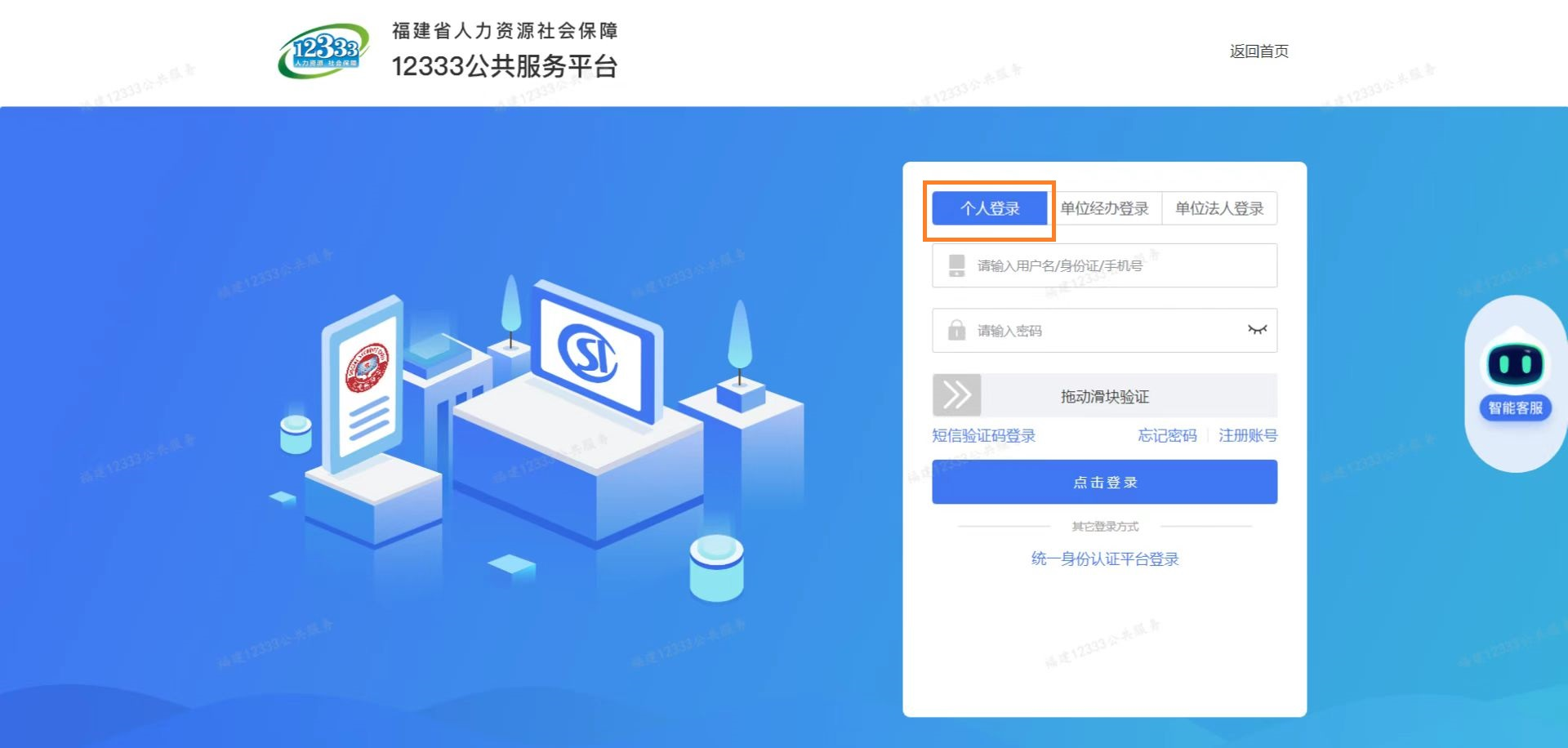 图3:福建省人社厅12333公共服务平台个人登录界面