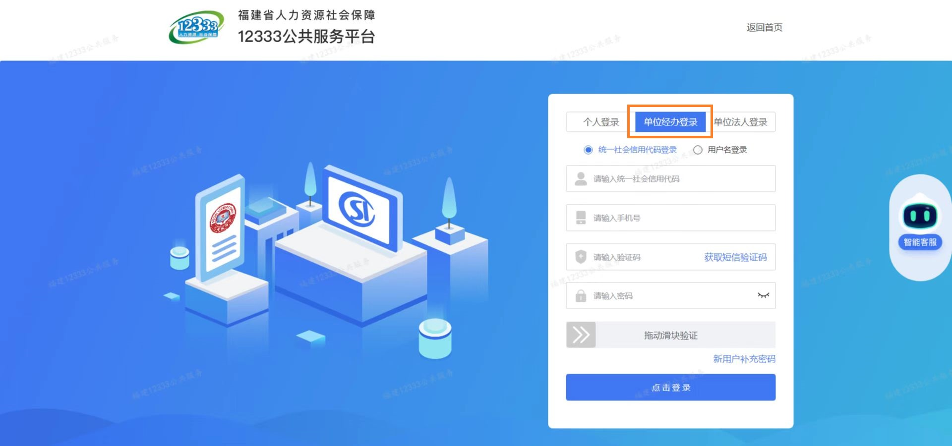 图4:福建省人社厅12333公共服务平台单位经办登录界面