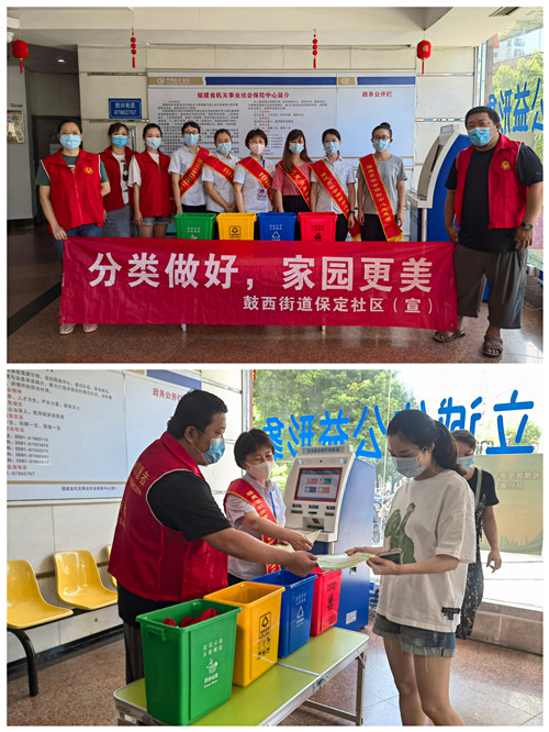 为了普及垃圾分类知识,引导广大市民积极参与到垃圾分类行动中,8月27日上午,省机关事业社会保险中心、省社会保险中心、省城乡居民保中心与鼓西街道保定社区联合开展“分类做好家园更美”志愿服务活动。