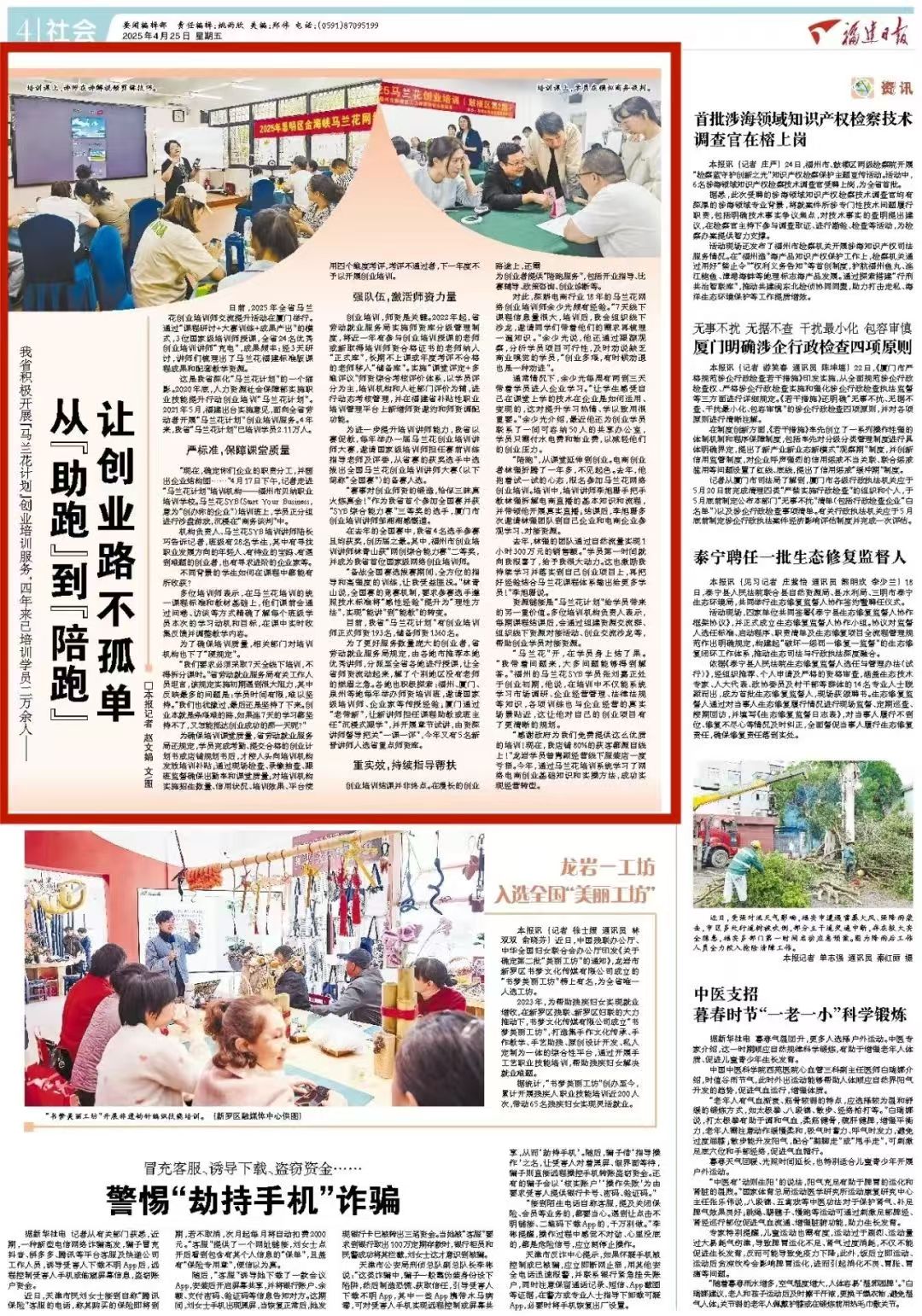 这是我省深化“马兰花计划”的一个缩影。2020年底,人力资源社会保障部实施职业技能提升行动创业培训“马兰花计划”。2021年5月,福建出台实施意见,面向全省劳动者开展“马兰花计划”创业培训服务。4年来,我省“马兰花计划”已培训学员2.11万人。