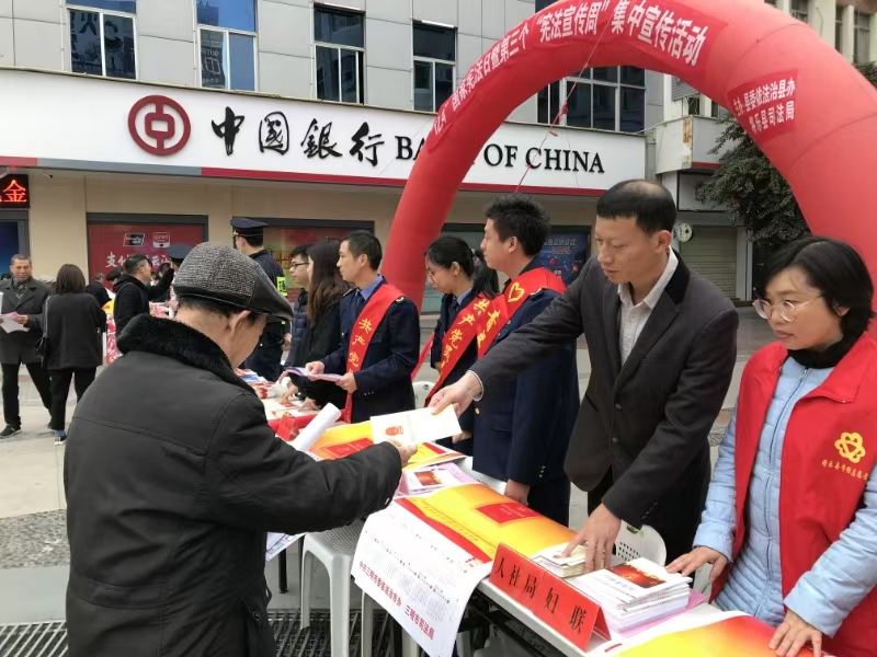 深入开展宪法宣传教育,利用新春招聘会、全民国家安全教育日、民法典宣传月、“12·4”国家宪法日等重要时间节点开展主题普法活动,推动宪法精神深入人心,2021年以来,在古镛镇七星街喷泉广场共举办主题活动10次,发放宣传册1600余份。