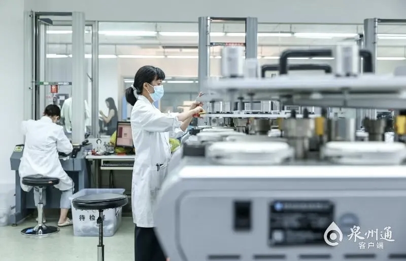 安踏实验室内,研发人员正在对样品进行测试实验。(泉州晚报社融媒体记者 林劲峰 摄)