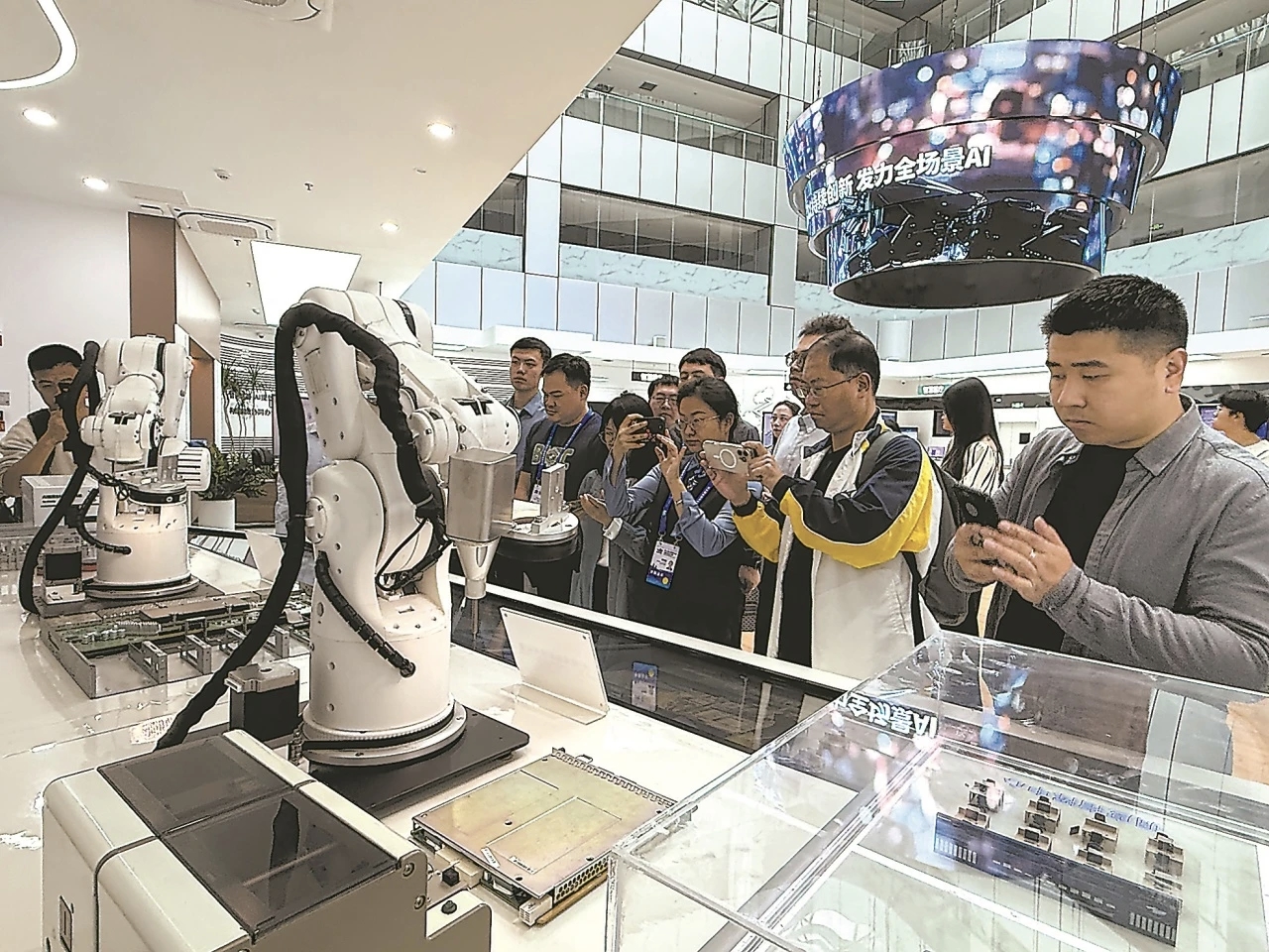 在星网锐捷科技园里,以信创产业、元宇宙、视联网、智慧空间、智能制造等为代表的AI应用方案让代表们大呼过瘾。