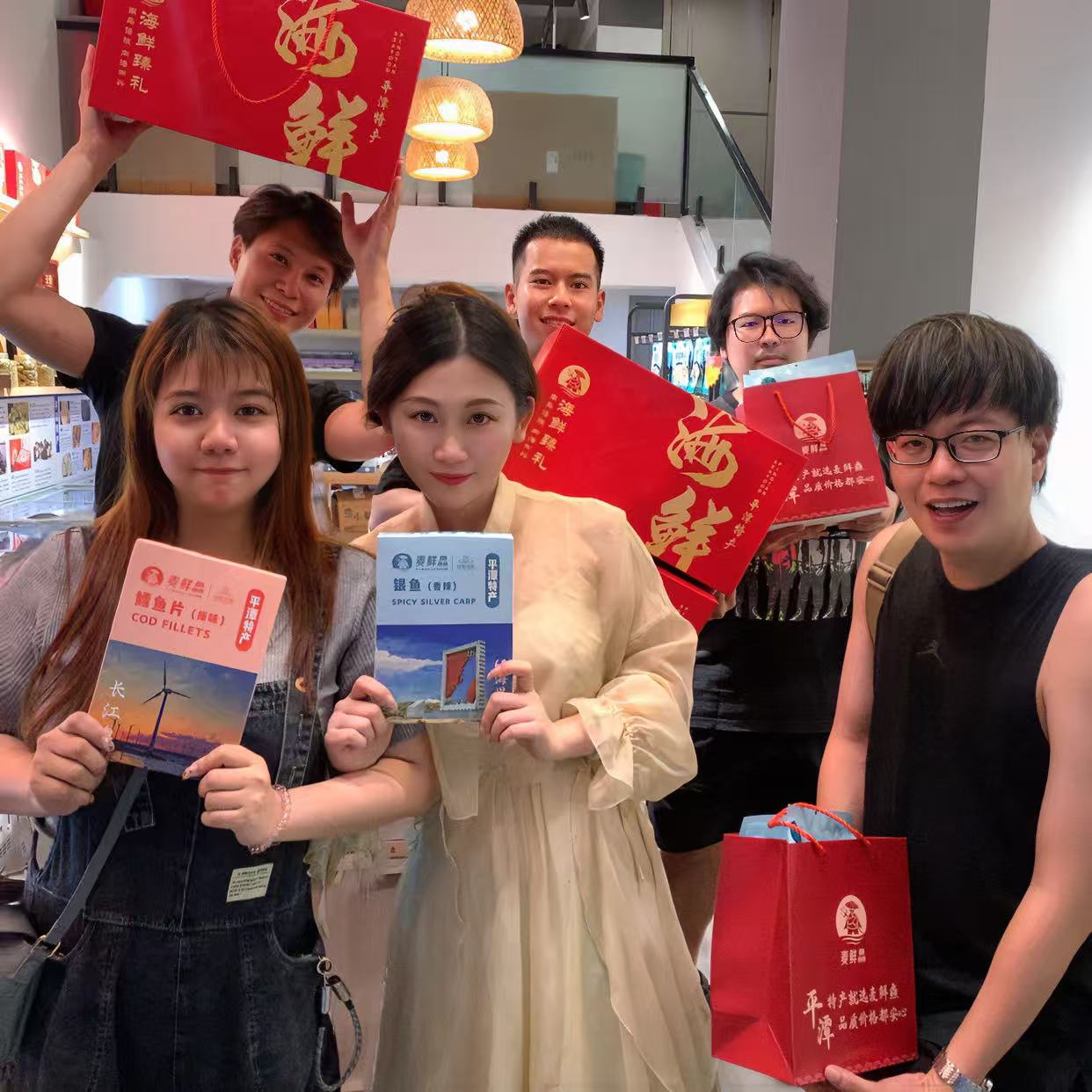 培训结束后,他们盛情邀请台胞们来“麦鲜鱻”线下店参观,没想到收获了满满认可——台胞们对着店里的装修风格、伴手礼包装连连称赞,更被店员的热情服务打动,直言“从外到内都能沉浸式感受平潭特色”。他们尤其喜欢店里的即食小鱼干礼袋,好几人当场买了伴手礼盒准备带给台湾的朋友;香辣鳗鱼丝和带鱼酥更是让大家眼前一亮,“台湾从来没有这种做法,新鲜又好吃!”