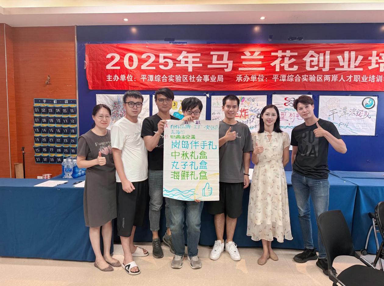 开店后,两人默契分工:丁丰逸凭着自身出色的沟通协调能力,成为了奔走在海岛上的“采购员”。他跑遍海岛对接渔民和非遗手艺人,磨破嘴皮只为收罗最地道的平潭紫菜、海鲜干货与手工咸食。俞婷则发挥细致严谨的优势,成为把平潭故事装进礼盒的“设计人”,她一头扎进包装设计,一遍遍调整蓝眼泪、石牌洋等平潭元素的呈现方式,把平潭故事融入包装中,让每一份伴手礼都藏着岚岛的专属密码。可现实的冷风却给了他们一记重击,平潭旅游季的悬殊落差:旺季时订单多到发不完,平季却门可罗雀,原材料积压、资金周转困难,曾经安稳踏实的工作与如今的“创业难”形成鲜明对比,满心憧憬渐渐被迷茫笼罩。那段时间,他们白天分头跑市场找销路,晚上对着冷清的订单后台复盘,甚至吵过“要不要回头”,但一想到辞职时的决心,想到还没来得及绽放的家乡文化,又咬牙把“放弃”咽了回去。就在快要撑不下去时,转机悄然降临。他们报名参加了平潭马兰花创业培训班,走进了“马兰花”创业培训课堂。在这里,他们不仅系统学到产品定位、渠道拓展、企业管理、AI智能运用等专业知识,还结识了志同道合的创业者与行业前辈。更重要的是,两岸青年混合分组、共同完成实训任务的形式,既突破了农副产品行业的固有思维,让跨界创新的经营思路不断迸发,更在两岸伙伴的协作碰撞中,实现了不同地域创意文化与商业视角的深度融合。