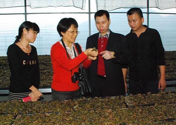 安溪县地处戴云山脉东南坡,属亚热带湿润气候区,安溪茶叶名扬四方。特殊的地理和气候条件非常适合种植金线莲等高附加值经济作物。此次活动主要应安溪福建福草生物科技有限公司要求,对该公司金线莲的生产和加工进行技术指导,同时为安溪的金线莲产业培育技术示范。7日上午,专家们一到达安溪,就直接前往该公司地处海拔500米以上的金线莲生产基地考察指导。陈菁瑛主任一行考察了该公司的组培室、光照室和生产大棚,并为该企业的有关人员进行了技术培训,系统介绍了金线莲种植、病害防治和产品加工等生产技术,提醒他们要强化品牌意识,生产质优价优的产品,增强抵御产业风险的能力。企业方面表示,在他们正在尝试发展金线莲之际,专家来现场把脉指导,非常及时,不但让他们坚定了信心,还避免了走弯路。希望专家今后继续给予关心和指导。该企业和专家就“金线莲产品质量控制”等内容达成了合作意向。