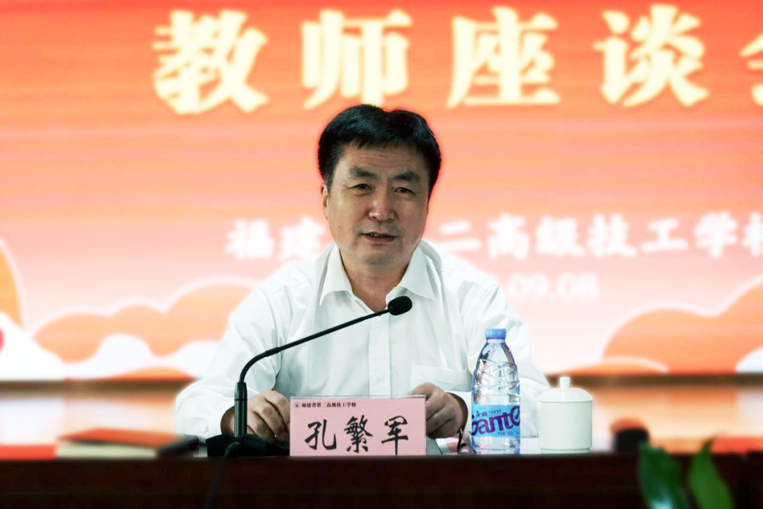座谈会上,孔繁军厅长代表福建省人社厅向学校老师以及全省技工院校的教职员工致以节日问候和美好祝愿,并向为技工教育和职业培训事业给予关心、作出贡献的离退休教职工和社会各界人士表示衷心感谢。