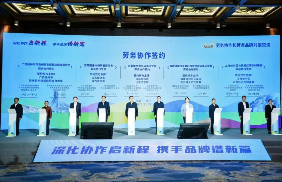 两签协作促共赢为深化劳务协作成果,推动劳务品牌高质量发展,福建省2个项目参与现场对接签约。一是永安市人民政府与福建和其昌竹业股份有限公司开展“永安笋竹人家”劳务品牌合作签约,签约金额达6亿元;二是漳州市长泰区人民政府与遵义市正安县人民政府开展“长泰龙人古琴师”与“正安吉他工匠”劳务品牌合作及省际劳务协作双签约,为下一步持续完善跨区域对接、劳务品牌规模化发展注入新动能。