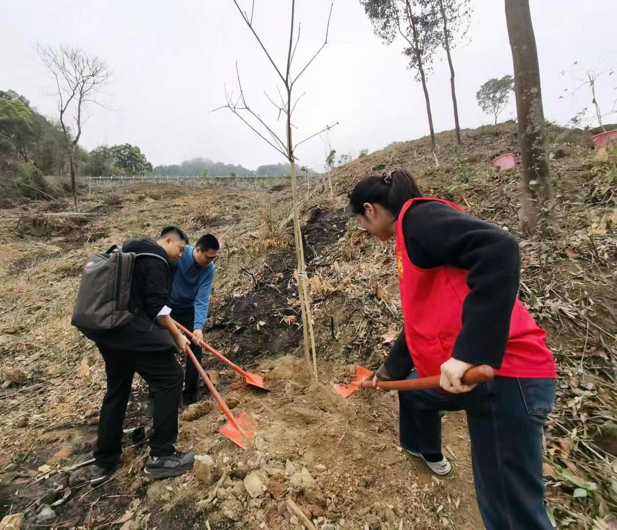 活动伊始,工作人员讲解了植树要点和相关注意事项,干部职工们认真聆听,了解树苗选择、树坑挖掘、树苗扶正等知识后,手持铁锹、锄头等工具,挥锹铲土、培土围堰,植树现场一派热火朝天的劳动景象。大家用辛勤的劳动和真挚的心意,栽下一棵棵新生的树苗,种下更多的生机和活力。