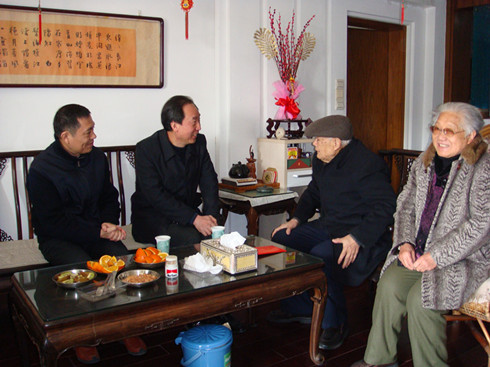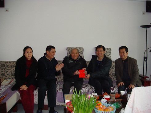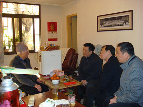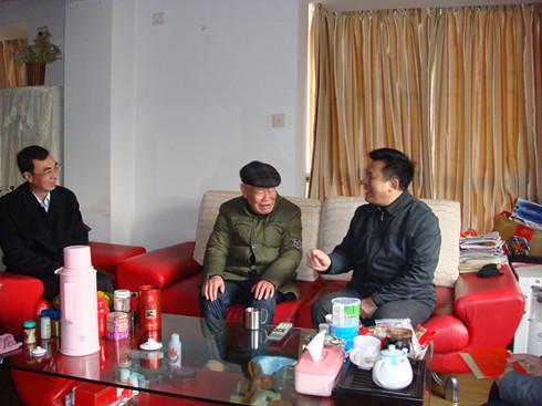 钟厅长率机关的同志慰问原省人事局副局长、94岁高龄的王思高同志,并与之亲切交谈。
