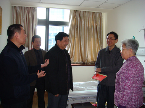 杨怀榕副厅长率机关的同志慰问住院离退休干部李钦莲、江作梁同志,并与他们亲切交谈。