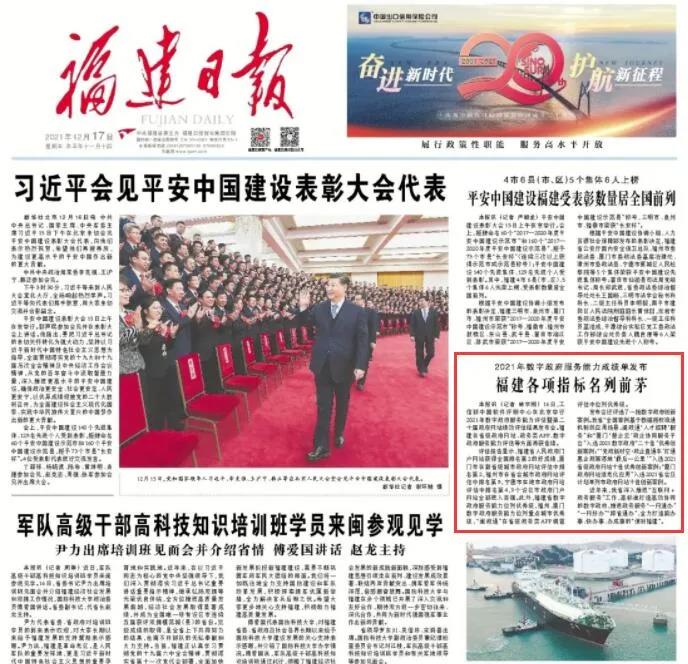 我省“全国首例基于数据授权流通机制的应用场景:闽政通‘人才招聘’服务”和厦门“‘慧企云’政企协同服务平台”入选2021年数字政府“二十佳”优秀创新案例;