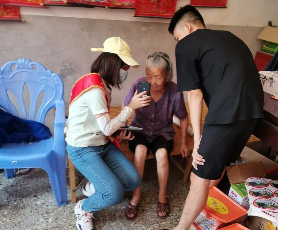 图3:志愿者前往赛岐镇象环村帮助行动不便老人进行入户待遇资格认证