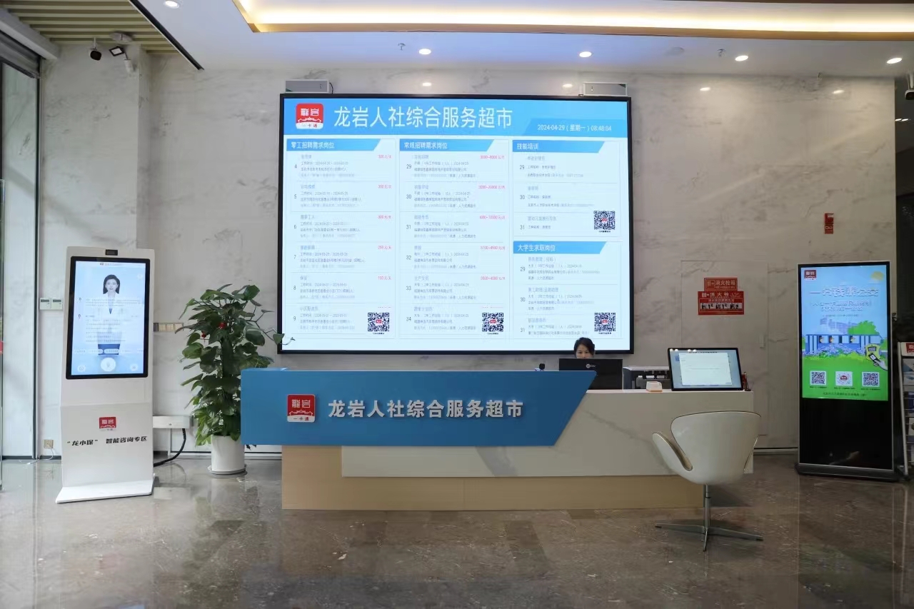 龙岩市从硬件设施、周边人气、管理规范、承接能力等多方面因素考量,优选在上杭农商银行龙岩支行设立首个“人社综合服务超市”,将助企纾困、就业创业、参保缴费、政策咨询、帮办代办等人社全领域功能应用嵌入银行网点,构建“银行网点+专业服务团队+人社智能终端”的“三位一体”服务网络,让群众在“家门口”就能办理人社业务。
