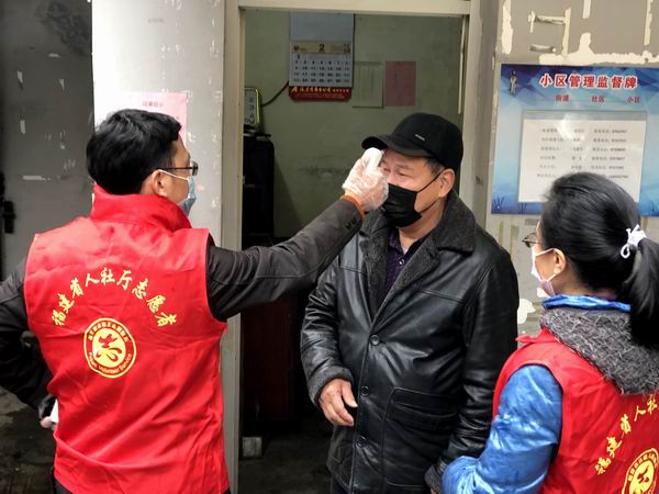 2月3日,志愿者们在厅机关大楼协助安保人员做好体温测量,督促提醒进入大楼的人员规范佩戴口罩,并协助做好公务访客登记。这项志愿服务将持续至2月14日,并根据疫情防控需要延长服务时间。